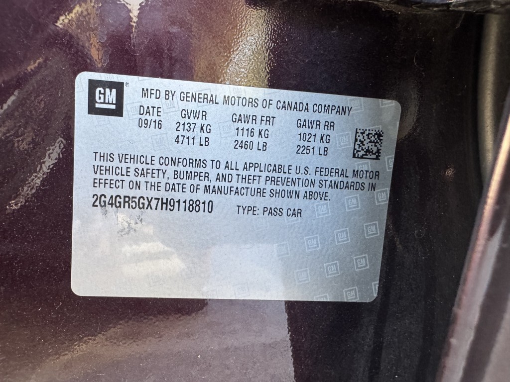 | VIN #: | 2G4GR5GX7H9118810 |
